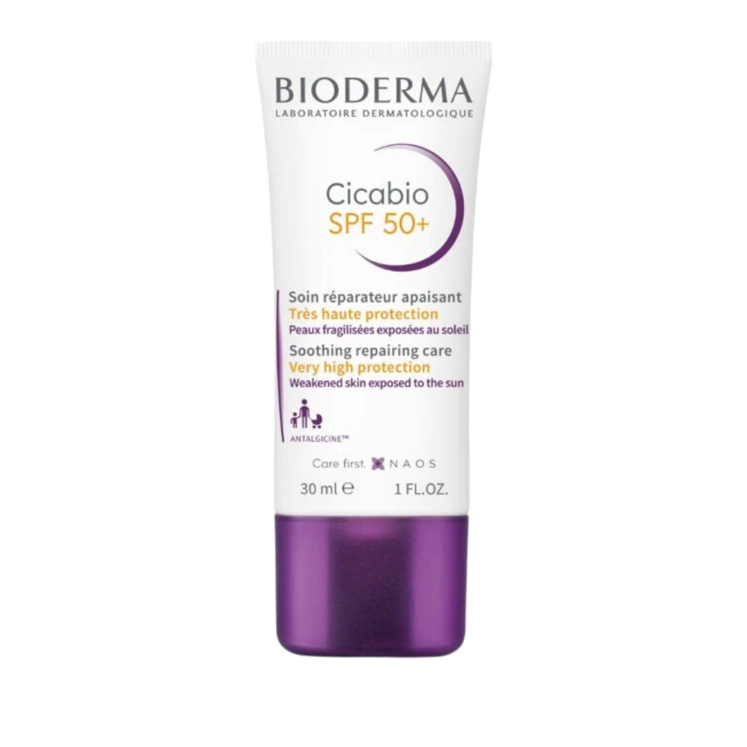 BIODERMA Cicabio SPF50+ est un soin réparateur apaisant spécialement formulé pour les peaux fragilisées et exposées au soleil. Ce soin contribue à la réparation épidermique tout en offrant une très haute protection solaire. Il est idéal pour les peaux ayant subi des agressions (laser, peeling, etc.) ou présentant des lésions superficielles.