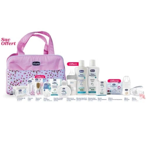 Chicco Sac Maternité Fille – 12 Produits Essentiels + Sac Rose Offert