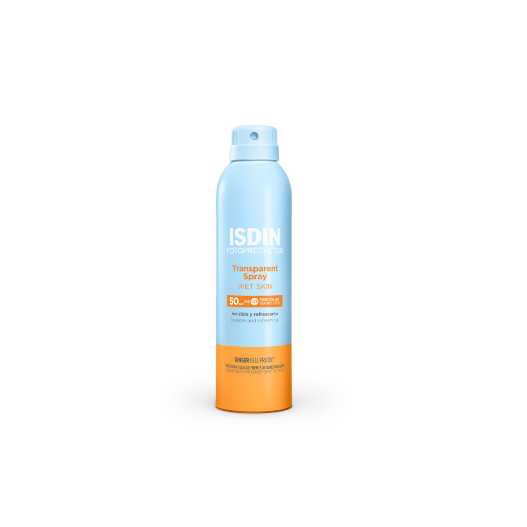 ISDIN Fotoprotector Transparent Spray Wet Skin SPF50+ Ce spray protection agit directement et efficacement en donnant une sensation de fraîcheur dès l’application, même sur peau mouillée.