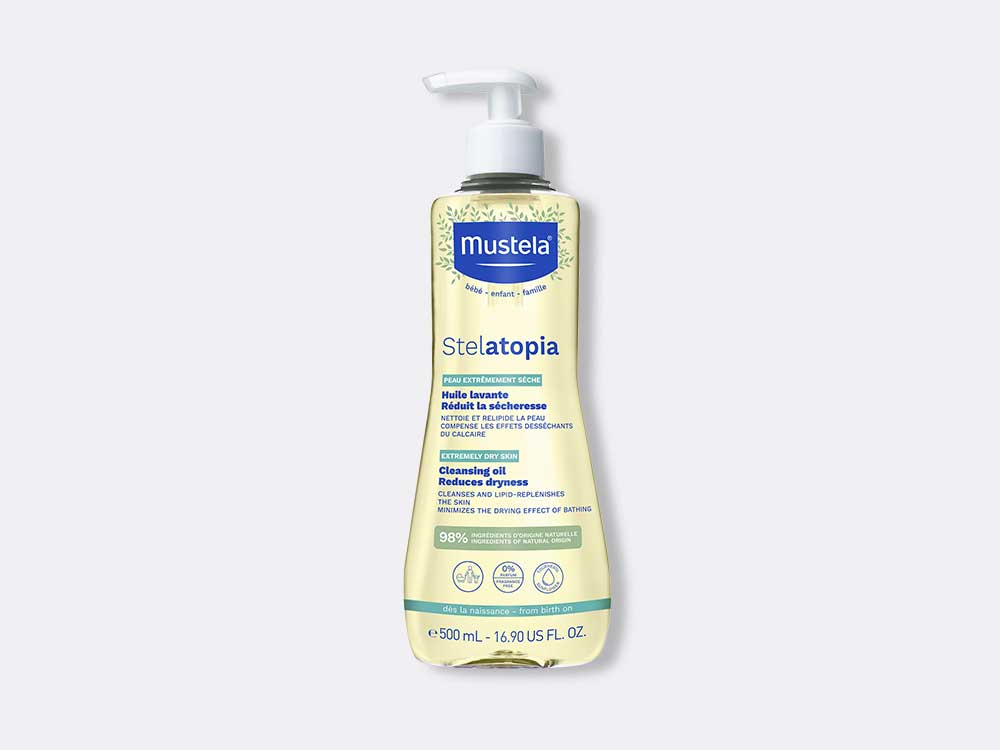 L’huile lavante Mustela Stelatopia nettoie en douceur et relipidifie la peau très sèche à tendance atopique. Elle apaise les sensations de grattage et protège la barrière cutanée.