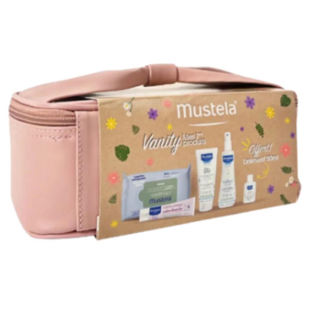Le coffret MUSTELA VANITY ROSE est une charmante idée cadeau, idéale pour célébrer l’arrivée d’un nouveau-né ou pour faire plaisir à une jeune maman. Ce vanity rose, élégant et pratique, contient une sélection de produits essentiels de la marque MUSTELA, reconnue pour son expertise en matière de soins pour bébés et futures mamans. Conçu avec des ingrédients rigoureusement sélectionnés, ce coffret offre une routine complète pour la toilette et l’hydratation de la peau délicate de bébé. C’est un cadeau attentionné qui allie l’utile à l’agréable, parfait pour accueillir bébé dans les meilleures conditions.