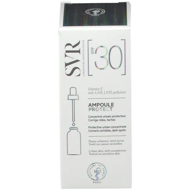 Protégez votre peau des agressions extérieures et du soleil avec l’ampoule SVR [SPF30] Protect. Ce sérum ultra-léger et non gras offre une protection SPF30 tout en renforçant la barrière cutanée pour une peau plus forte et plus lumineuse.