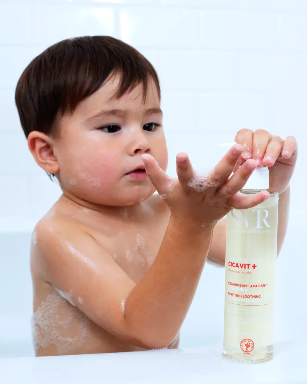 Nettoyez en douceur les peaux fragilisées et irritées avec le gel moussant SVR Cicavit+. Sa formule sans savon, enrichie en agents apaisants et hydratants, réduit les sensations de tiraillement, les irritations et favorise la réparation cutanée.